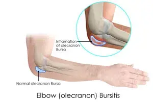 Elbow bursitis occurs when the bursa, a fluid-filled sac that cushions the joint, becomes inflamed. Prolonged pressure, repetitive movements, or direct trauma to the elbow can cause bursitis. Activities like leaning on the elbow for extended periods, repetitive kneeling, or constant friction against the elbow can lead to bursitis. The inflamed bursa causes pain, swelling, and tenderness around the elbow joint.