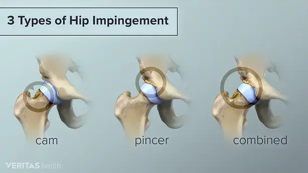 Hip impingement, or femoroacetabular impingement (FAI), occurs when there is abnormal contact between the hip joint's bones. It can be caused by structural abnormalities, such as a misshapen femoral head or hip socket. Hip impingement can result in pain, stiffness, and limited range of motion in the hip joint. Activities that involve hip flexion or rotation may exacerbate the symptoms.